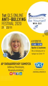 ΕΚΠΑΙΔΕΥΣΗ: INTRODUCTION TO ANTI-BULLYING – Σάββατο 21/11 3.15-5μμ με διαδικτυακή σύνδεση στο Zoom.